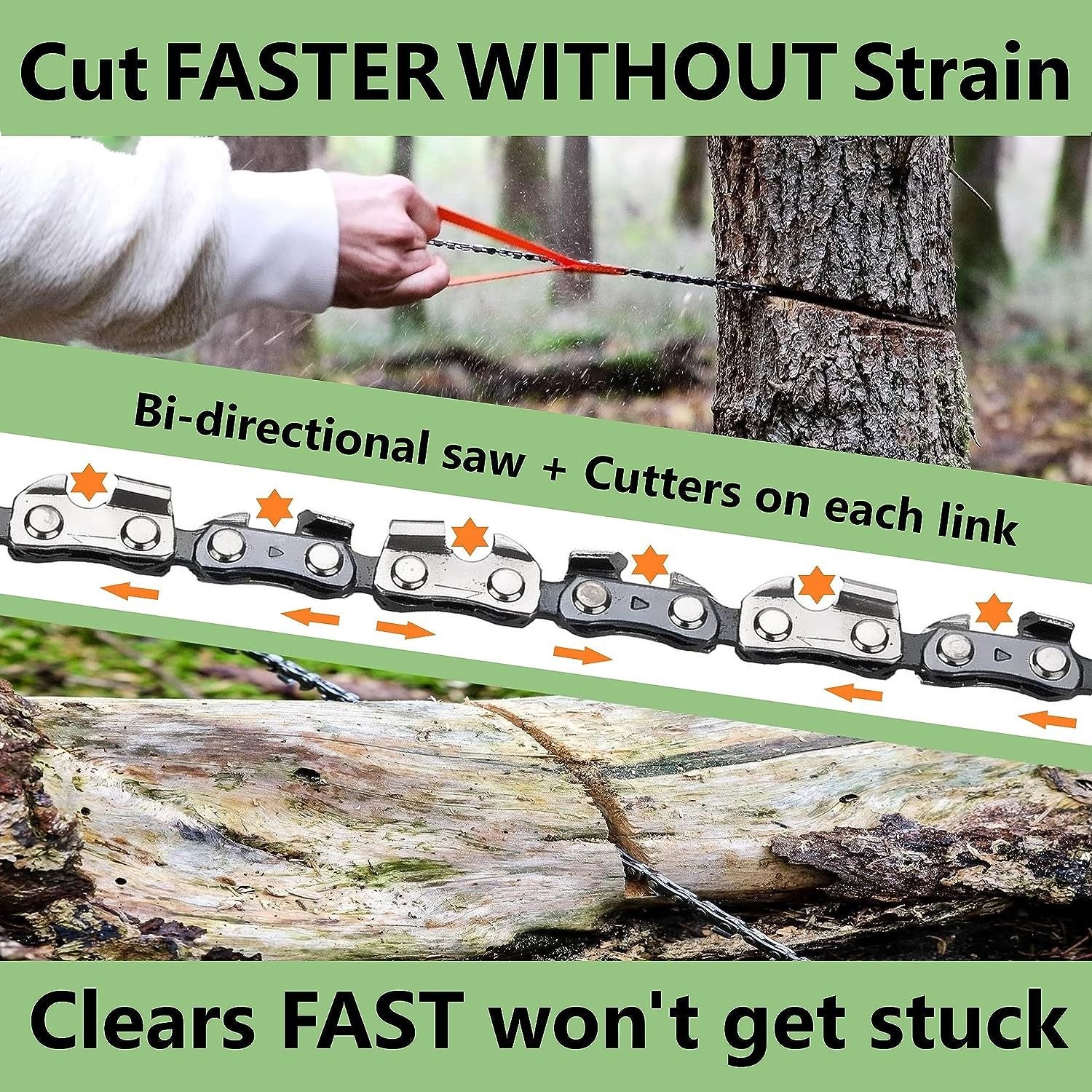 5. Fast Cutting:The hand saw chain has a sharp and efficient cutting edge that can remain sharp for long periods, making it ideal for chopping wood in survival situations and outdoor adventures.