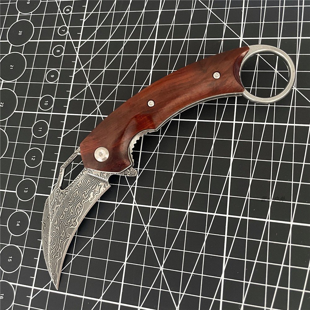 Damascus Patterned Steel Folding Knife