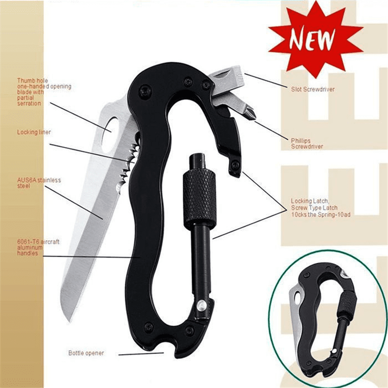 Multifunctional; can be used as a quick-hanging buckle; or as a Phillips screwdriver/slotted screwdriver.