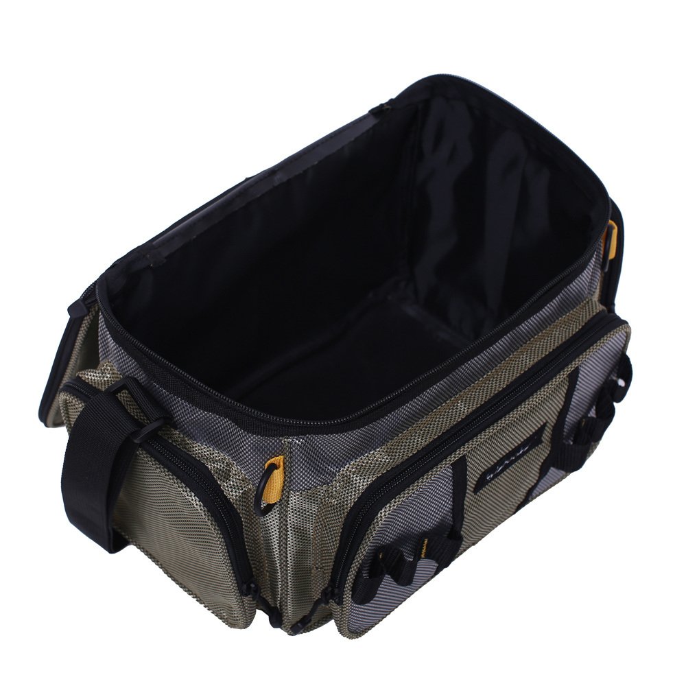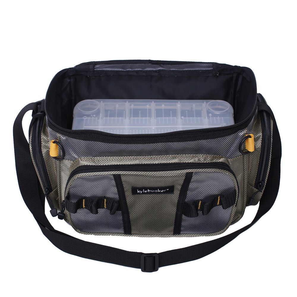 More Than A Tackle Bag for Fishing-This fishing tackle bag is well designed in it's color and style .With its simple but fashion style, which brings you not only fishing joy but also a sense of fashion.-And gives you enough space for a whole day fishing and keeps your gears organized .-This fishing gear bags can be used not only as a fishing tackle box bag, but also great for camping, hunting and other outdoors activities