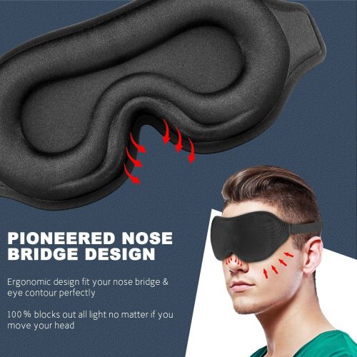 100% Block Out Light: Sleep mask has a larger coverage and the edges fit the cheekbones. Uniquely designed of the nose area, effectively blocking light from entering, prevent light leakage and allows your eyes freely blinking.